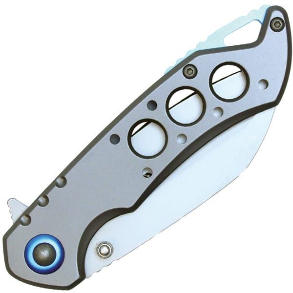 Assisted Open Pocket Knife, Grey Handle with Blue Accents