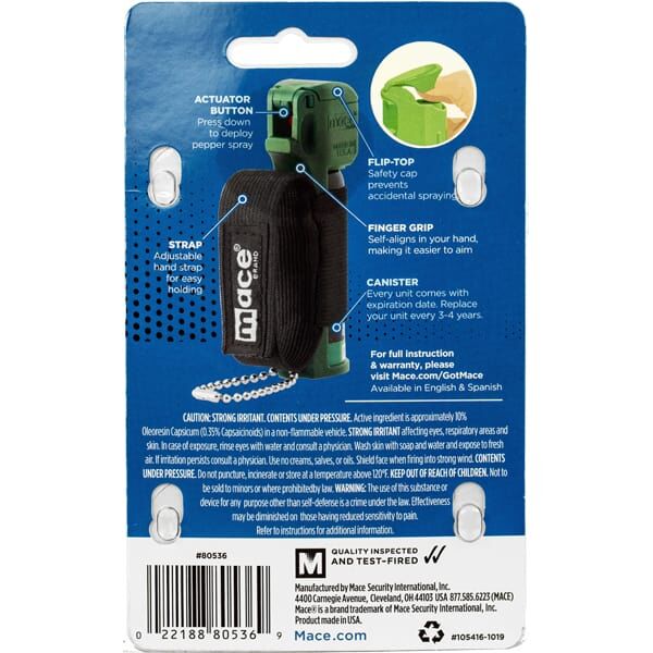 The Mace Canine Repellent stands out due to its thoughtful design features that prioritize both safety and ease of use. The flip-top safety cap is a critical component, ensuring that the spray is only deployed when needed, thus preventing any accidental discharges. This feature is especially beneficial when you’re in a high-energy environment like running or cycling, where quick and safe access to the spray is essential.